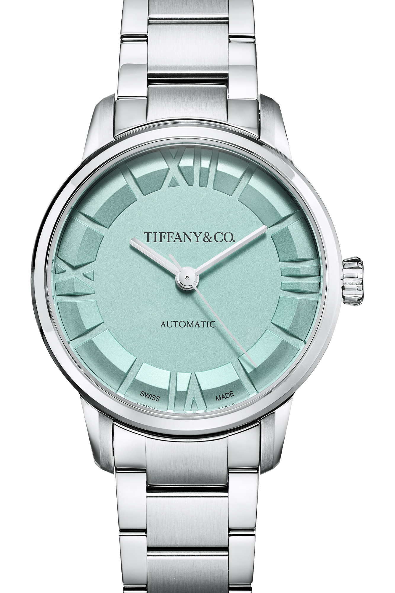 The Atlas joins a growing lineup of watches by Tiffany & Co., including the sporty CT60 and the classical Union Square (both of which are available in the brand’s signature shade of blue). Tiffany & Co. established its first watch manufacture in Switzerland in 1874, and despite the brand’s reputation for diamond jewellery, the re-introduction of the Atlas widens its watch portfolio significantly. With its bold Roman numerals, clean-lined indexes, faceted hands with brushed and polished finishes, and a bevelled hour ring, the new Atlas provides a modern contrast to the Union Square and yet another connection to the brand’s 170-year history in New York City.